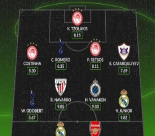 WhoScored欧冠本轮最佳阵容:姆巴佩、维尼修斯、热苏斯在列