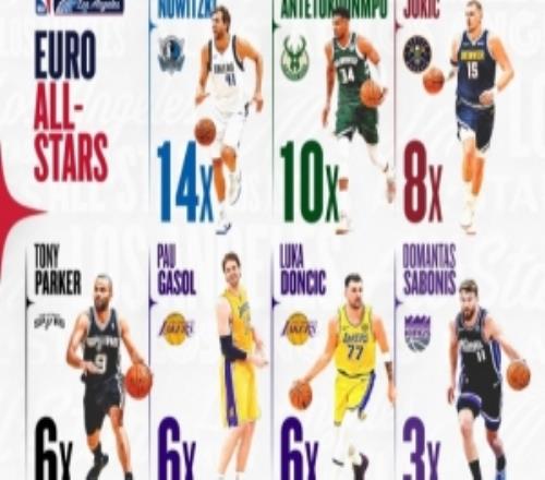 一共23人!历史上入选过全明星的欧洲球员诺维茨基14次入选最多