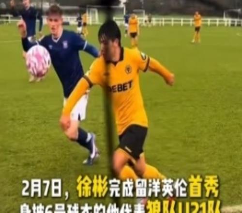 体育播报2月8日宣 在徐彬代表狼队U21完成本次留洋的首秀后,足球中国官...