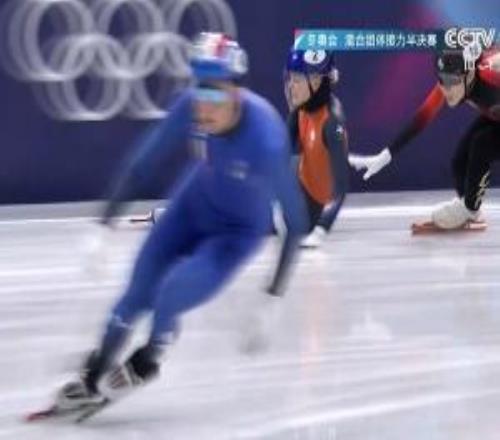 短道速滑男女混合团体接力半决赛:中国队晋级决赛荷兰队摔倒