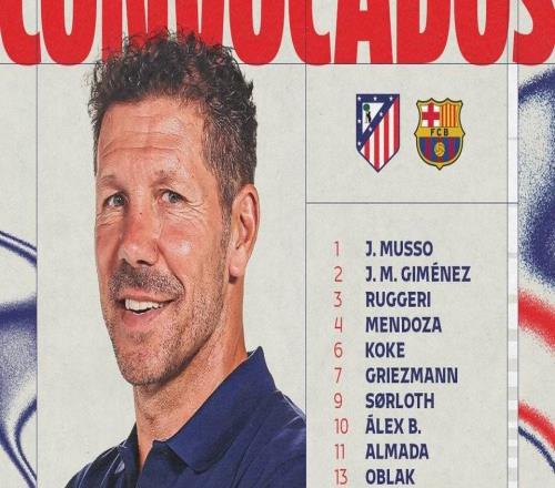 马竞国王杯战巴萨大名单:格列兹曼领衔,瑟洛特回归