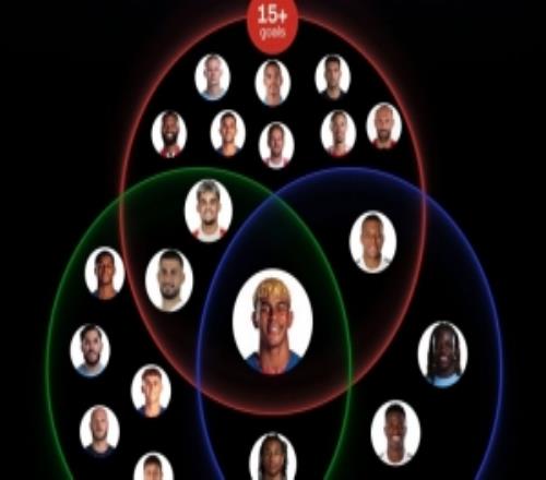 全能边锋!本赛季进球15+、助攻10+、过人75+,五大联赛仅亚马尔
