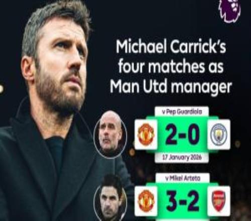 卡里克执教曼联至今的四场比赛:(2021年+2026年)2-0曼城(瓜迪奥拉)3-2阿森纳(阿尔特塔)1-1切尔西(图赫尔)2-0比利亚雷...