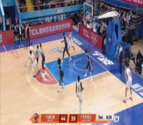 广东队运动战迟迟未开,8分08秒,杰克逊底角干拔陈家政飚进三分,胡明轩出现致命失误,杜锋换回萨姆纳,萨姆纳极限救球“助攻”戴昊上篮得手,广东落后14分,情况非常不妙。
