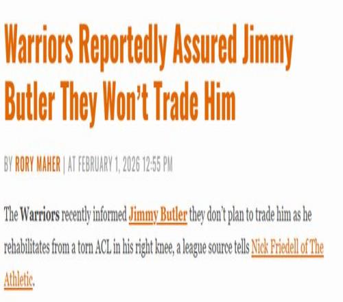 北京时间2月2日,据勇士队记弗里德尔报道,联盟消息人士透露,勇士队近期已向吉米-巴特勒做出承诺,鉴于其正处于右膝前交叉韧带撕裂的康复期,球队计划不会将其交易。