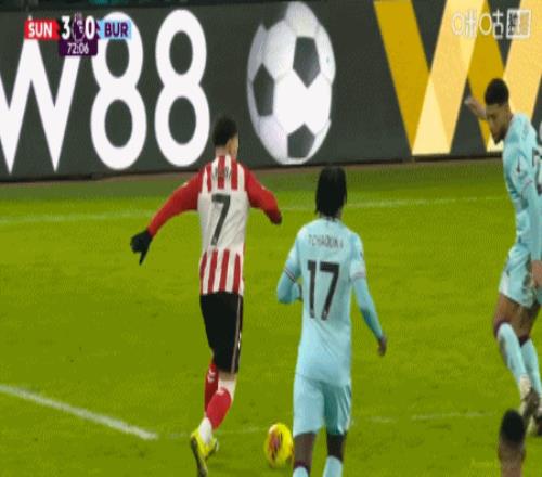 第72分钟,塔勒比左路内切兜射破门,桑德兰3-0伯恩利
