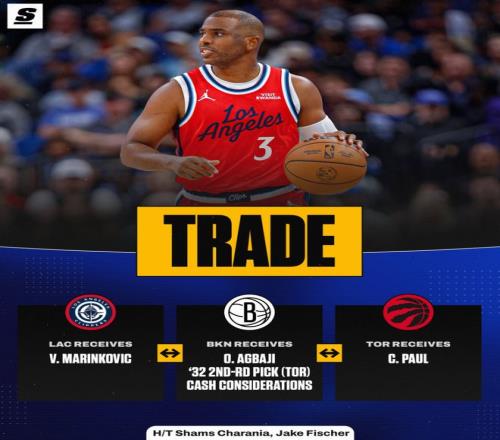 北京时间2月5日,洛杉矶快船终于送走了40岁的克里斯-保罗,猛龙、篮网、快船三方交易中CP3被送往寒冷的多伦多,这笔交易中猛龙将阿巴基、2032年次轮签送到篮网,快船送给篮网350万现金腾出一个空间,篮网帮快船吃掉保罗的薪金空间。