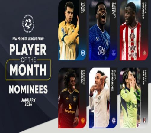 体育播报2月5日宣 PFA(英格兰职业球员协会)官方公布1月英超最佳球员候选,具体如下: