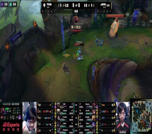 第一局前期,上路369安蓓萨越塔吃皮被Xiaoxu赛恩单杀送出一血,随后naiyou潘森再度来上,369安蓓萨配合击杀Xiaoxu赛恩。后续小龙处双方辅助互换,JunJia赵信追击击杀Creme发条,JDG打出1换2,经济持平。