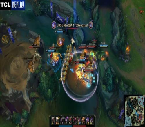 【17:05】中路团战,V神牛头二连击飞TES两人,fengyue波比锤飞JDG两人,TES中路放出先锋撞掉JDG一塔,经济落后1.5k。