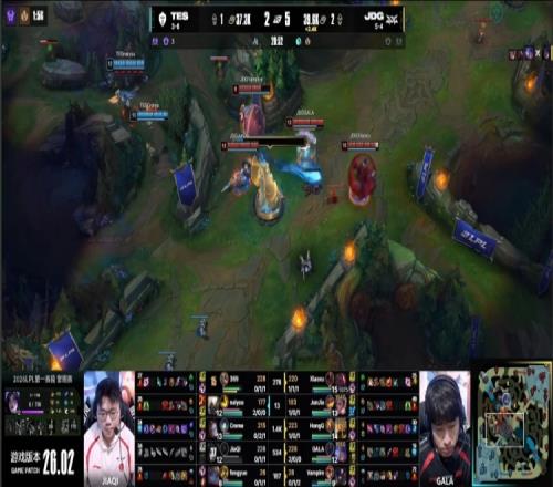 【20:52】JiaQi卡莎中路塔下吃线被JDG众人越塔轻松融化,上路老9贪吃塔皮也被Junjia与HongQ逮捕,naiyou潘森跳大来上与Creme发条反打,Creme发条双杀JDG中野,整体双方打出2换2,JDG经济领先2k。