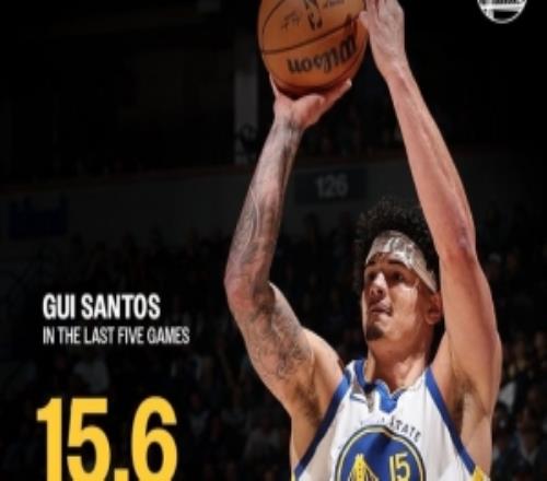 勇士官推晒桑托斯近5场数据:场均15.6分运动战命中率68.2%