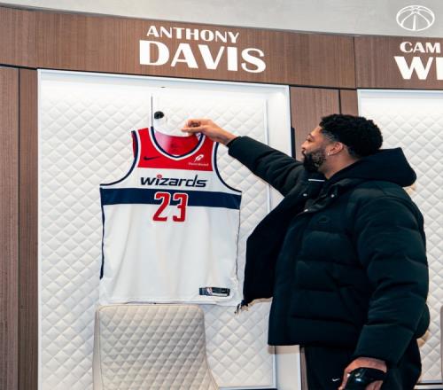 浓眉抵达华盛顿!参观奇才更衣室拍摄定妆照手部仍带着护具_24直播网