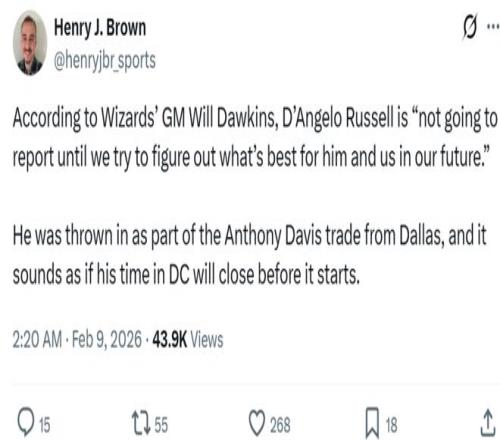 完成交易之后,不仅浓眉哥对于加盟鱼腩奇才队不感兴趣,双方合作计划一波三折,作为添头的拉塞尔也被曝出不愿意前往奇才报到。