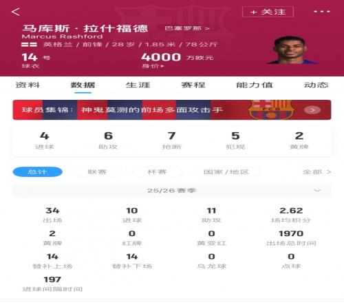 报道称,拉什福德融入巴萨非常成功,这也使得巴萨必须对球员未来作出决定。拉什福德的买断价格在谈判租借时就已经敲定,为3000万欧元,巴萨希望能降低这笔费用,但他们已经知道这不可能。