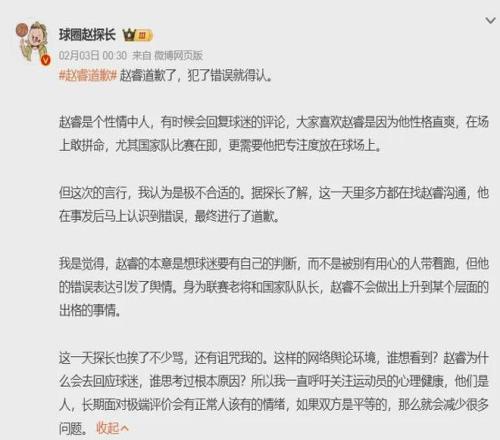 都说已到而立之年的赵睿成熟了,只能讲如今在球场的他的确很像指挥官&领袖,可场外依然容易上头,从而有些言论完全无法令人接受。