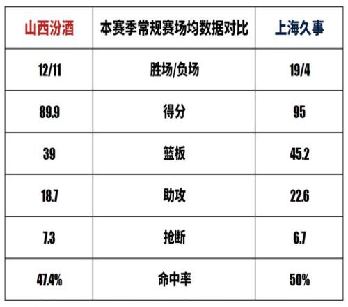 山西汾酒与上海久事在CBA俱乐部杯历史上共交手1次,山西汾酒0胜1负;两队在CBA联赛历史上共交手45次,山西汾酒21胜24负,本赛季两队交手1次,山西汾酒0胜1负。