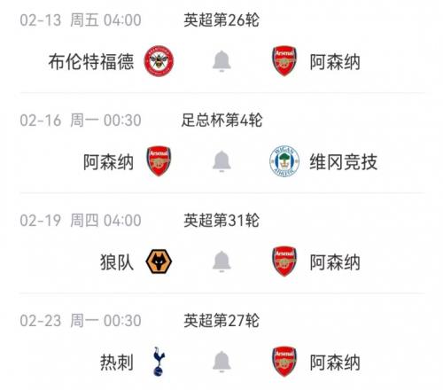阿森纳未来赛程↓