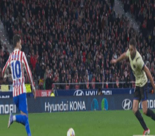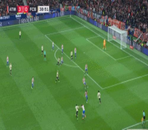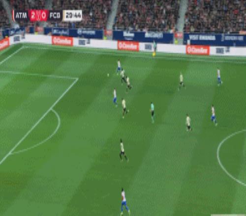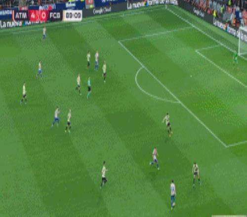第45+3分钟,打花了!阿尔瓦雷斯禁区前抽射破门,马竞4-0巴萨