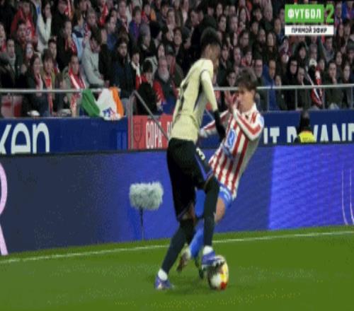 第40分钟,亚马尔直塞,费兰转身打门被穆索没收