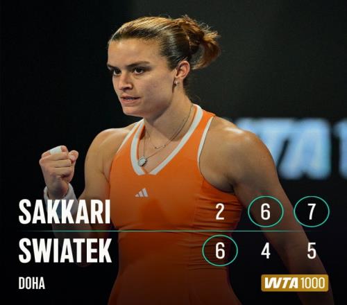 体育播报02月13日宣 WTA1000多哈站1/4决赛,萨卡里以2-6 6-4 7-5逆转三届赛会冠军、头号种子斯瓦泰克,终结了对后者的四连败。希腊名将本周击败两位世界前十,职业生涯第三次闯入赛会四强,也继2024年印第安维尔斯站之后再进1000赛四强(总第11次)。