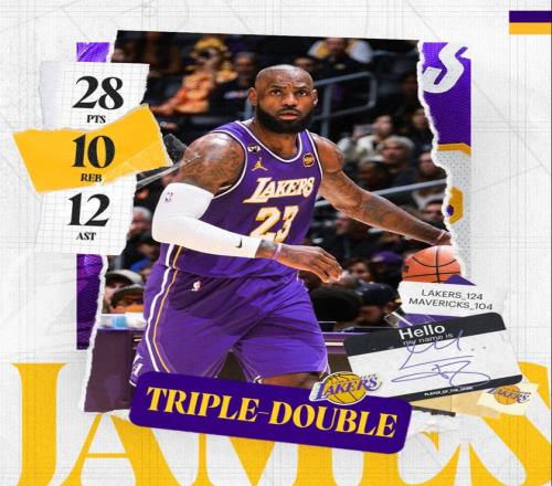 北京时间2月13日,NBA常规赛,湖人124-104大胜独行侠,此役后湖人重返西部第五。这场比赛41岁的勒布朗从开场就发挥出色,首节就拿到14分6助攻的全面数据,全场比赛他鏖战35分钟拿到28+12+10的三双数据。