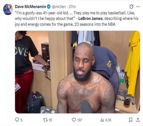 赛后詹姆斯接受采访:我就是一个41岁的老咕噜棒子,我就是登场打球,他们愿意付钱让我打球,我有什么理由不高兴呢?(这句话大概率已经说明詹姆斯对湖人管理层失误了)