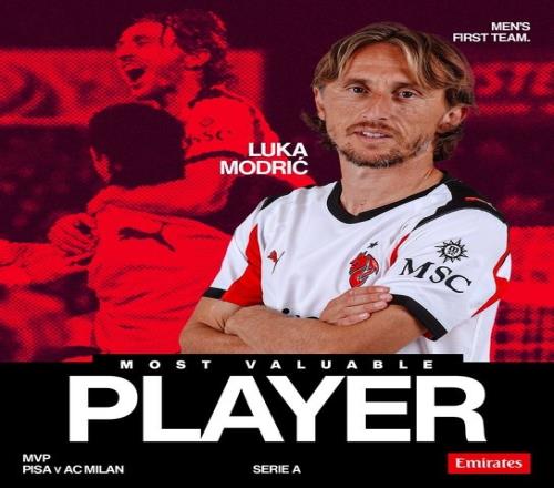 体育播报2月14日宣 在本轮意甲,AC米兰2-1击败比萨,赛后米兰中场莫德里奇当选本场最佳球员。