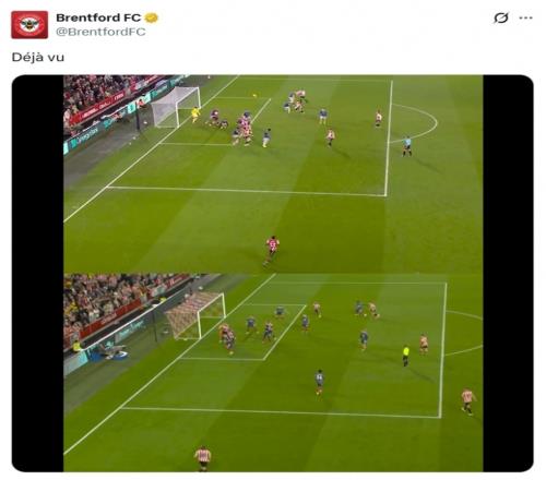 体育播报02月14日宣 布伦特福德官方发布了一段视频,晒出他们近年来两度通过“手榴弹战术”攻破阿森纳球门的对比片段,两粒进球简直如出一辙。