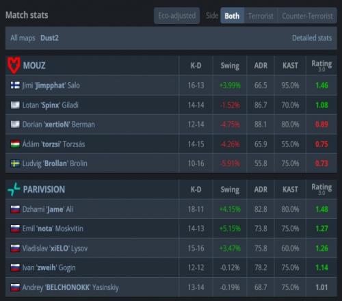 图一PV选图Dust2先攻,手枪局上帝带队打A手枪四杀拿到首分,次回合MOUZ强起失败再E一局让PV连拿3分,随后比赛进入长技术暂停。暂停回来长枪局,Brollan出A大被KK穿掉,torzsi大狙B点爆轰双杀,上帝反杀torzsi后下包,小吉米回防打掉上帝后拆包拿到MOUZ首分。后续PV被锁5分,MOUZ以7-5结束上半场。