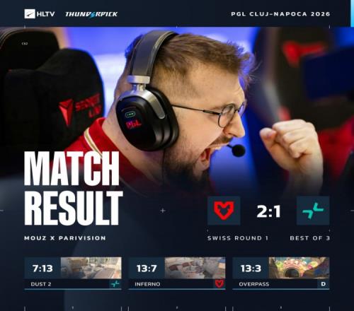 体育播报2月14日宣 CS2大赛PGL克卢日-纳波卡今日开战,PARIVISION遭卫冕冠军MOUZ让一追二,MOUZ迎开门红!