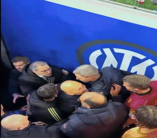 混乱的,不止是两队在不同时段的状态起伏,也是场外的那些风波。特别是在中场休息时,尤文主帅斯帕莱蒂、巨头科莫利、经理基耶利尼等人,在更衣室通道前,对裁判进行疯狂的围攻,成为这场比赛的一道奇景