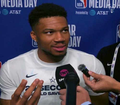 体育播报02月15日宣 今日NBA全明星媒体日,雄鹿官方晒视频,球星字母哥接受了采访谈到了梅西、C罗。
