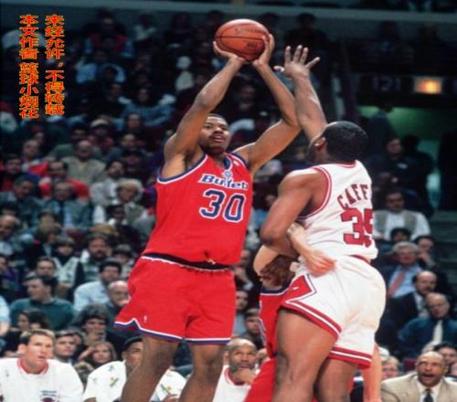 说起投篮,华莱士有个绝学,叫“直臂投篮”,那个时代标准的投篮是二段式投篮,讲究的是三个90度,身体和大臂90度,大臂和小臂90度,出手后压腕,手腕和小臂90度,但华莱士的投篮,是把球尽量远离身体,抬到身体的最高点,两只胳膊尽量伸直,仅靠手腕的力量把球给拨出去。