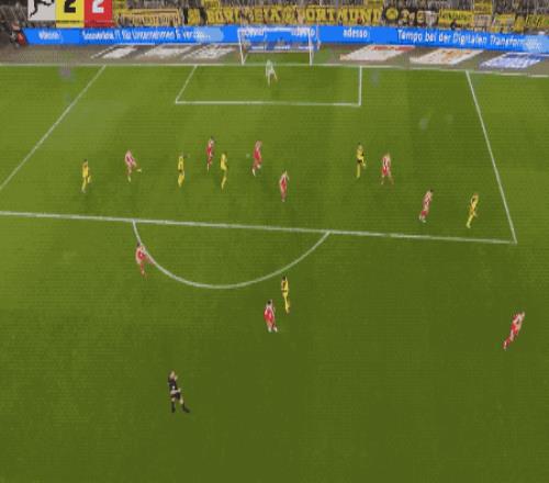 第54分钟,多特蒙德防线造越位,基米希挑传,格纳布里反越位插上头球助攻,凯恩一蹴而就。