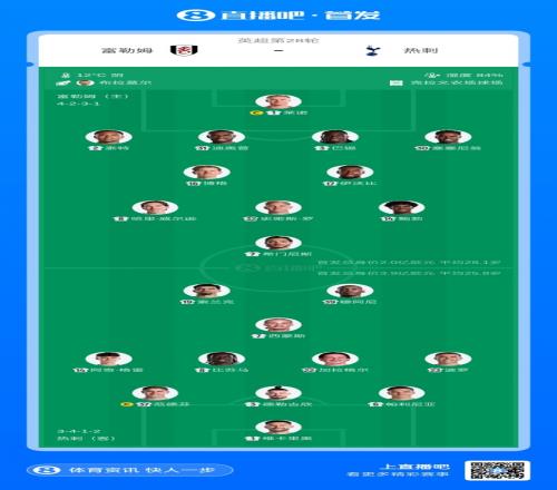 体育播报03月01日宣 北京时间22点,英超第28轮,富勒姆vs热刺,赛前双方首发公布。