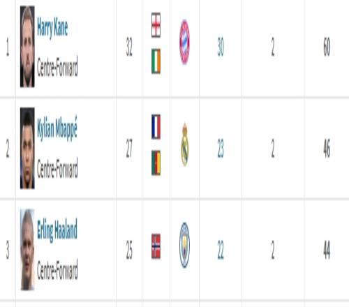 本赛季32岁的凯恩仍然保持着超高的效率,在到目前为止保持全勤,出战37场比赛,狂轰45球并送出5助攻。在欧洲金靴排行榜上,凯恩目前60分大幅领先身后的姆巴佩。