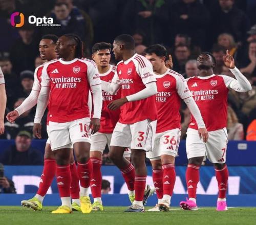 阿森纳本赛季英超10次净胜1球,队史同期仅次于0304赛季