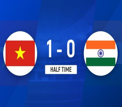 伤停补时3分钟。上半场比赛结束,越南女足1-0印度女足。