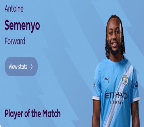 本场比赛塞梅尼奥首开记录,赛后他也当选英超官方球迷票选全场最佳球员。
