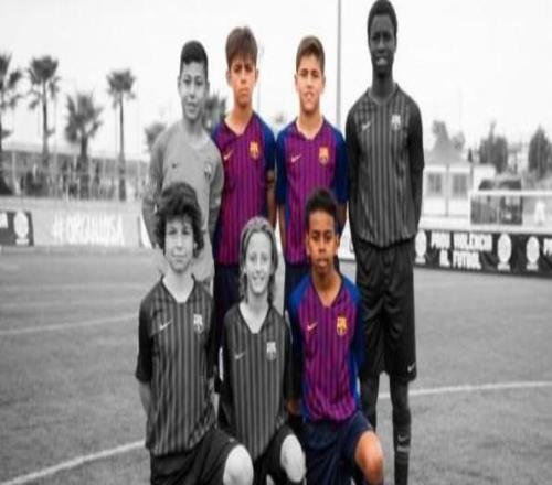 这里有一张他们在U12参加7人制足球比赛时的合照,除了亚马尔、库巴西和贝尔纳尔之外,还有兰德里-法雷、乔迪-索塞多、大卫-萨斯和吉伯特-乔丹纳。