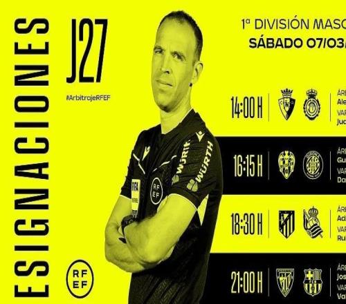 西班牙足协官方公布了当地时间周六4场西甲比赛的裁判安排,何塞-穆努埃拉将执法巴萨客战毕尔巴鄂竞技。周六西...