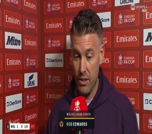 体育播报03月07日宣 足总杯16强对决,狼队1-3不敌利物浦,无缘足总杯8强。赛后狼队主帅爱德华兹接受了场边采访。
