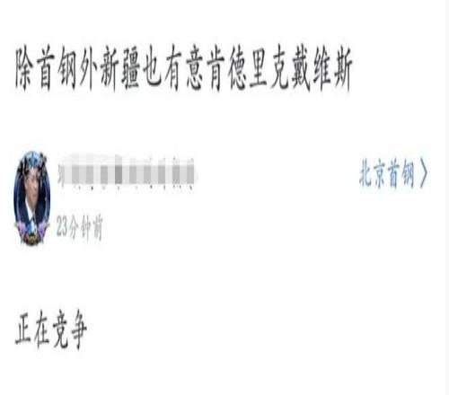 在这两天时间里,有关北京男篮想要签下外援肯德里克-戴维斯的消息引发了球迷关注。由于戴维斯的优先续约权在同曦男篮手里,媒体透露北京男篮已经向同曦男篮询问了戴维斯的优先续约权转让问题,同曦男篮方面也给出了明确价格。