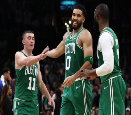 易边之后,塔图姆延续了第二节末期的手感。他在第三节的前3分29秒内得到7分。在此期间,他强势突破上篮得分,挡拆后中距离跳投命中,并在近距离防守球员头上命中三分。他的得分爆发帮助凯尔特人在第三节取得两位数的领先优势。