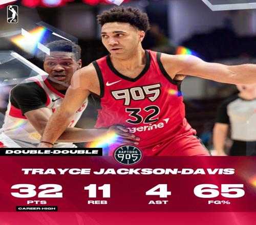 猛龙中锋特雷斯·杰克逊-戴维斯(TJD)被下放至G联盟,此役他表现相当出色。