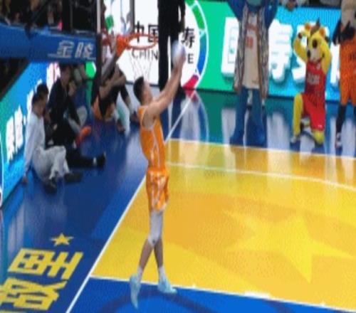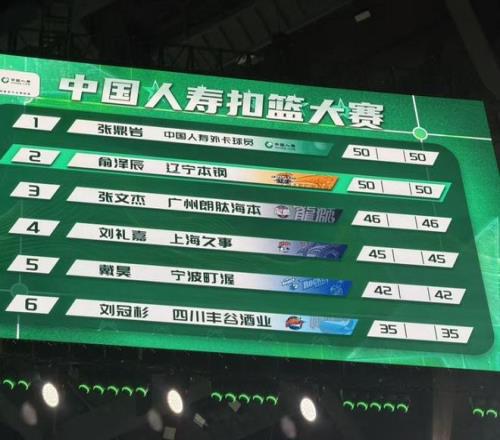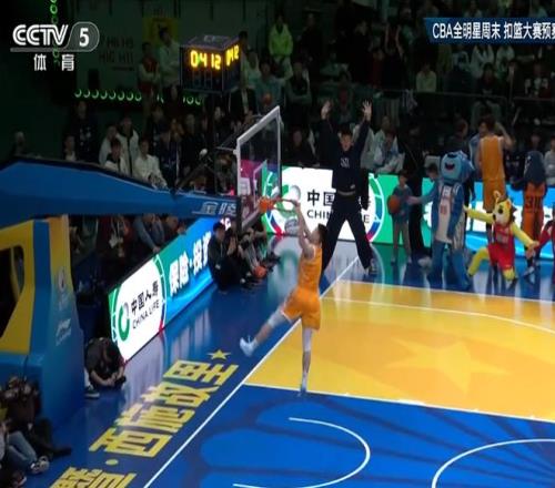 第5位出场的是四川球员刘冠杉,他尝试拉杆反扣连续两次失败,最后完成勉扣得到35分。