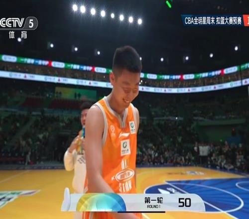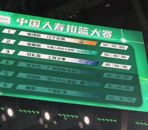 第6位出场的是俞泽辰,他完成远距离起飞折叠双手背扣,再次获得满分50分,从而两扣100分排在预赛第一。
