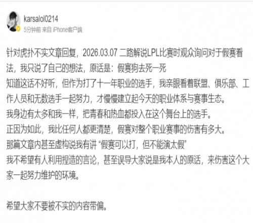 今日Karsa就此事给出个人声明: