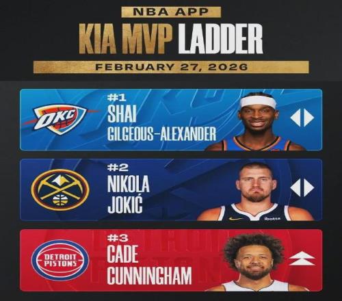 MVP最新排行榜,文班亚马已升至第四,亚历山大、约基奇和坎宁安分列前三。
